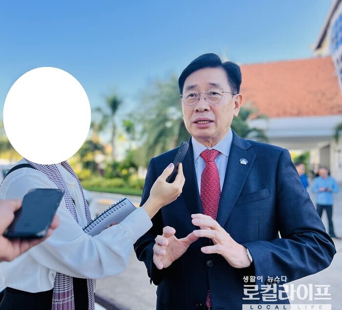 | ▲ 전진선 양평군수가 캄보디아 언론과 인터뷰를 하고 있다. (사진출처=전진선 페이스북) |