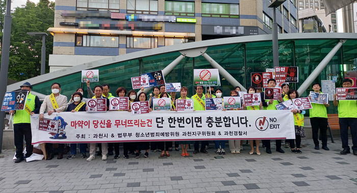김태훈 과천시 청소년유해환경감시단장은 “최근 마약 관련 범죄가 크게 늘고 있어 우리 시민과 청소년을 지키기 위해 민관이 합동으로 캠페인을 진행하게 됐다”라며, “지역 내에서 관련 범죄가 발생하지 않도록 마약의 위험성에 대해 잘 알리는 데에 힘쓰겠다”라고 말했다.