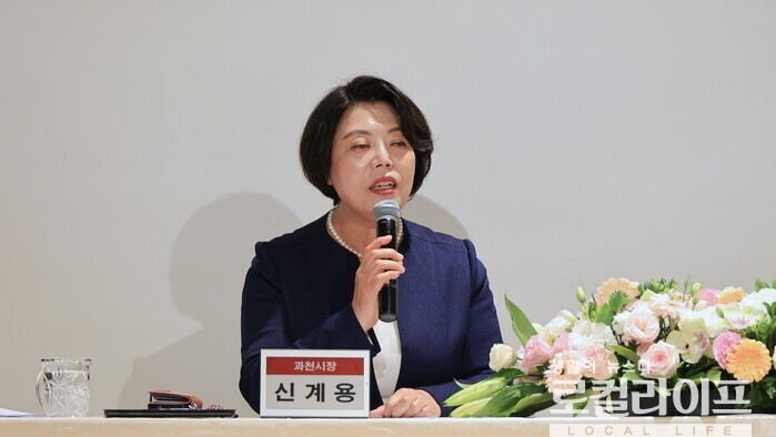 | ▲ 신계용 과천시장이 ‘과천시 청소년 활동 프로그램 지원을 위한 과천시-경기과천교육도서관 업무협약식’에 참석하고 있다. (사진출처=신계용 페이스북) |