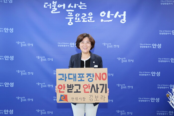 김보라 안성시장이 17일, 불필요한 과대포장을 근절하고 가치소비를 실천하는 친환경 소비문화를 확산하기 위한 캠페인인 ‘과대포장 선물 안 받고 안 사기’ 챌린지에 참여했다.