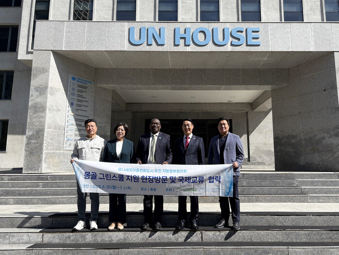 신계용 과천시장은 몽골 울란바토르에 위치한 유니세프 몽골사무소를 찾아 간담회에 참석하고, 아동 권리 실현을 위한 정책 공유 및 향후 협력 방안에 대해 논의했다. 이어 울란바토르에 있는 ‘74번 학교’를 방문해 그린스쿨 프로그램이 적용된 교육환경을 점검하고, 기후변화 대응 및 교육환경 격차 해소의 의미를 되새기며 현지 학생들과 함께 나무심기 활동에도 참여했다.