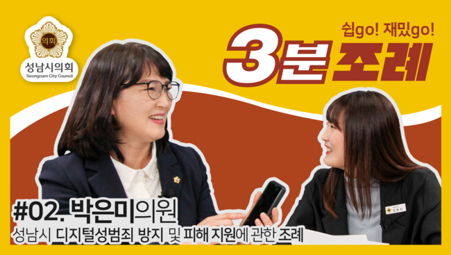 이번에 소개된 조례는 박은미 의원 등 30명이 공동발의한 ‘성남시 디지털성범죄 방지 및 피해 지원에 관한 조례’이다. 해당 조례는 최근 증가하고 있는 디지털 성범죄를 예방하고 범죄 피해를 입은 사람에 대한 지원 체계를 마련하고자 발의되었으며, 지난 2월 19일부터 시행됐다.