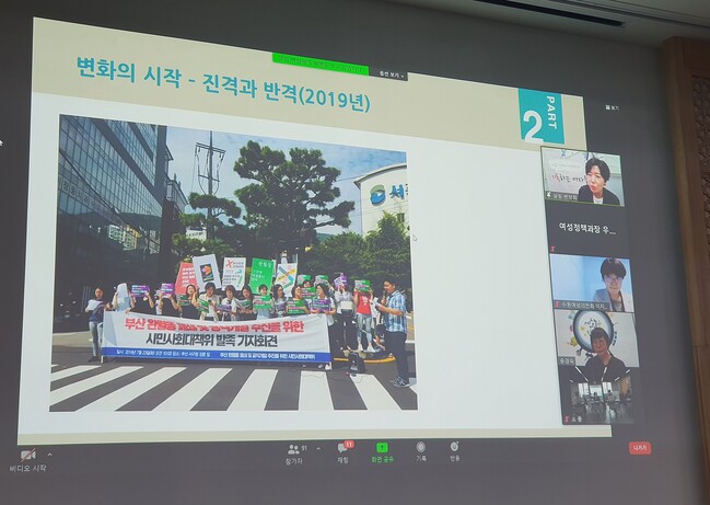 “‘착취에서 인권으로’ 젠더 거버넌스를 통한 성매매집결지 선미촌 해체와 재구성”을주제로 발표한 송경숙 전북여성인권센터장은 “성매매가 ‘여성의 인권을 착취하는 성 불평등에 기반한 젠더폭력’이라는 인식이 공유돼야 한다”며 “그럴 때 지역사회의 인권 감수성이 향상되고, 왜 집결지가 해체돼야 하는지 분명한 목적의식이 공유될 수 있다”고 말했다.