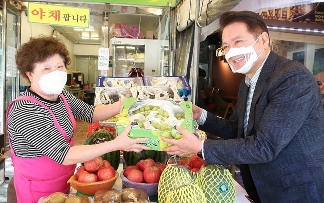 코로나19 여파로 손님이 많이 줄었다는 상인들의 하소연에 최 시장은 지역화폐 10% 특별할인 판매 중에 있고, 특히 11월 17일까지 지역화폐를 20만 원 이상 사용할 경우 추가로 3만원을 지원한다며, 전통시장과 골목상권 활성화에 기여하게 될 것이라고 예고했다.