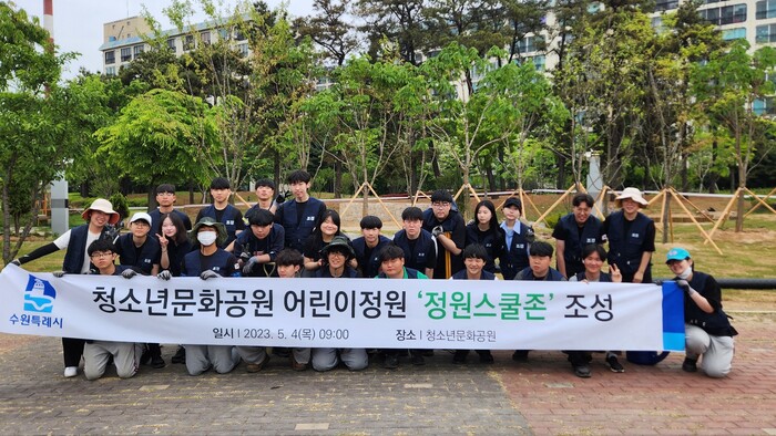 수원시가 수원농생명과학고, 성균관대학생들의 창의적인 아이디어를 바탕으로 수원시청소년문화공원에 ‘정원스쿨존’을 조성했다.