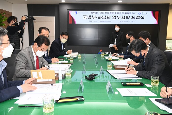 [로컬라이프] 송준형 기자 = 하남시는 미군반환공여지인 캠프콜번 개발사업 추진을 위해 국방부와 업무협약(MOU)을 체결하고 개발제한구역 해제 등 사업 과정에서 상호 협력을 강화하기로 했다.