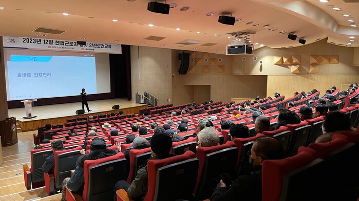 고용노동부 지정 안전보건교육 전문기관인 대한산업보건협회 소속 전문 강사를 초빙해 열린 교육은 ▲근골격계 질환 예방 및 관리 ▲동절기 뇌심혈관 질환 예방 등 각종 직업병 및 안전사고 예방을 위한 내용으로 구성됐다.