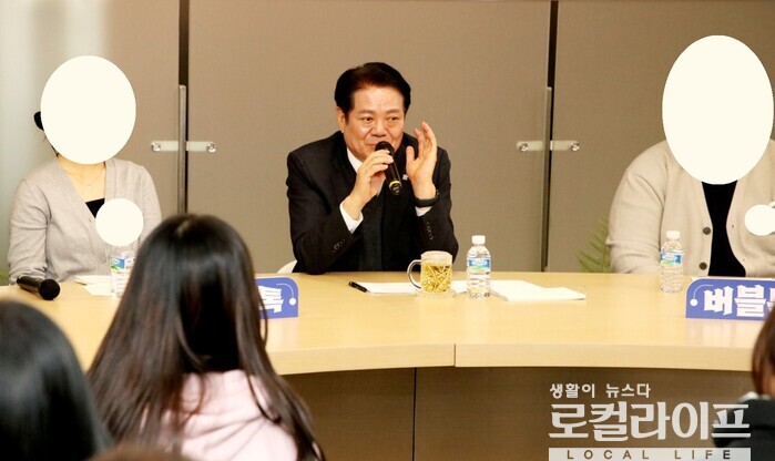 | ▲ 최대호 안양시장이 ‘청소년의 꿈이 버블버블, 버블톡’ 간담회에 참석하고 있다. (사진출처=최대호 페이스북) |
