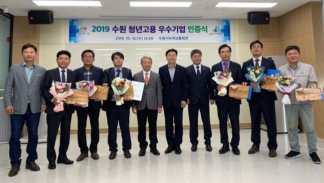수원시는 16일 수원시녹색교통회관에서 ‘수원 청년고용 우수기업 인증식’을 열고 수원시산업단지관리공단 내 6개 기업에 인증패와 인증서를 수여했다.