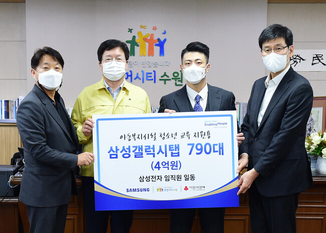 나기홍 삼성전자 부사장은 “기증한 태블릿PC가 온라인 수업을 하는 아동복지시설 청소년의 교육 지원용으로 사용되길 바란다”며 “앞으로도 수원시 청소년 교육을 적극적으로 지원하겠다”고 밝혔다.