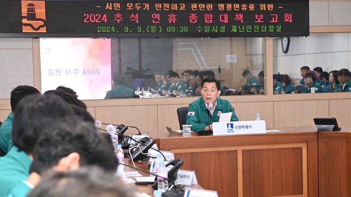 수원시는 ‘안전하고 따뜻한 추석연휴를 위한 빈틈없는 대응’을 목표로 ▲안전사고 예방 등 빈틈없는 안전체계 구축 ▲훈훈한 이웃사랑 실천 ▲주민 생활불편 최소화 ▲안전한 문화여가 지원 ▲공직기강 확립 등 5대 분야로 이뤄진 종합대책을 수립해 추진한다.