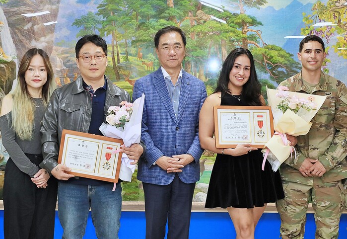 [평택=로컬라이프] 송준형 기자 = 평택시는 15일, 팽성대교 인근에서 소중한 목숨을 건져낸 민경찬(38)씨와 재니스 카르타헤나 보니야(34)씨에게 감사와 존경의 마음을 담아 유공자 표창을 전달했다.