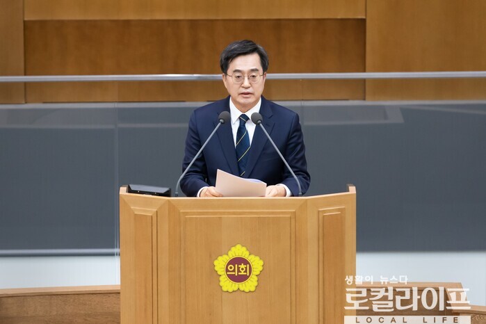 | ▲ 김동연 경기도지사가 도의회에 출석해 시정연설을 하고 있다. (사진출처=김동연 페이스북) |