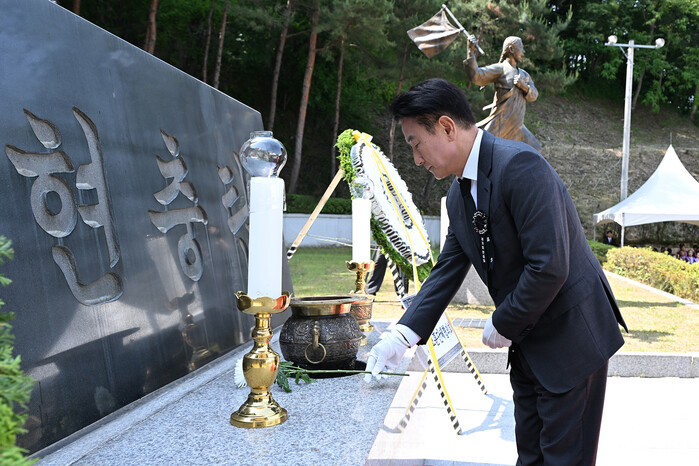 김동근 시장은 추념사를 통해 “지금 우리가 누리고 있는 자유와 민주주의, 평화와 번영은 순국선열과 호국영령들의 피와 땀, 눈물이 만들어낸 소중한 결실”이라며 “국가유공자와 보훈가족이 자부심을 느낄 수 있도록 보훈문화 확산과 예우 강화에 더욱 힘쓰겠다”고 말했다.