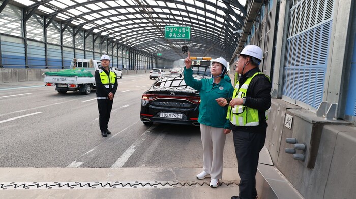 [과천=로컬라이프] 송준형 기자 = 신게용 과천시장은 29일 오후, 제2경인연결고속도로 갈현고가교 방음터널과 고가교 하부 체육시설 조성 현장을 직접 점검했다.