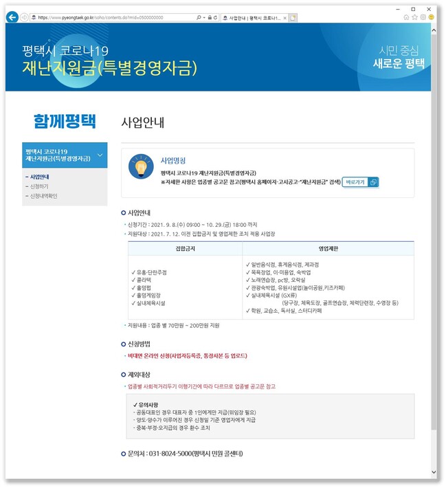 한편 시의회는 평택시 자체 재난지원금의 신속한 지급을 지원하기 위해 당초 9.2.~9.13. 예정됐던 임시회 의사일정을 8.30.~9.7.로 조정한 바 있다.