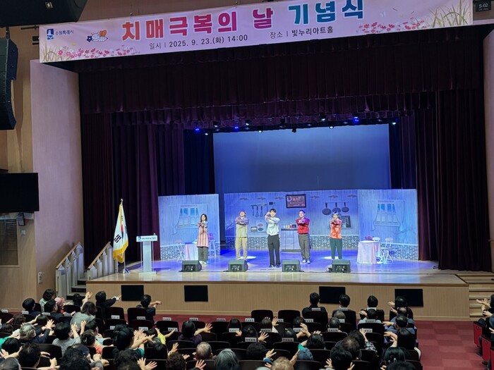 수원시보건소는 ‘치매 극복의 날’(9월 21일)을 맞아 23일 빛누리아트홀에서 ‘공감·힐링 기념 공연’을 열었다. 치매 노인과 가족, 시민 등 500여 명이 참여했다.