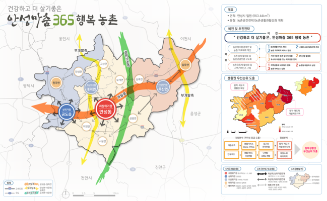 이를 위해 시에서는 정책 거버넌스 운영을 통한 365생활권을 구현함으로써, 수도권의 대표적 도농복합도시로의 살고 싶은 안성을 조성할 방침이다.