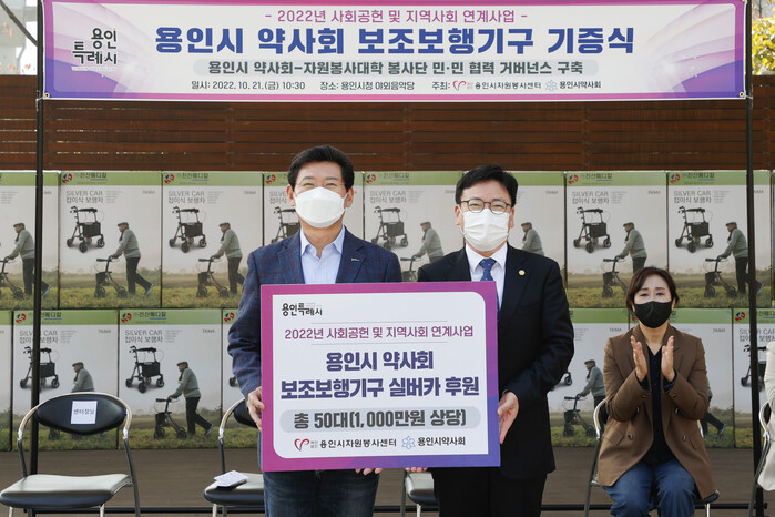 한편 실버카 50대는 관절염 등 노인성 질환으로 이동이 어려운 취약계층 어르신 50명에게 전달됐다. 용인시자원봉사대학을 수료한 자원봉사자 50명이 직접 전달해 뜻을 더했다.