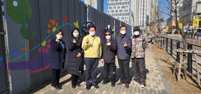 그러면서 삭막한 공사 가림막이 아니라, 이제는 화가분들의 정성스런 합동 작품을 보실 수 있다. 더 많은 공간을 함께 그려나가겠다며 고마움을 전했다.