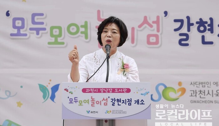 이날 개소식에 참석한 신계용 과천시장은 자신의 페이스북에 <과천시 장난감 도서관, ’모두모여 놀이섬‘으로 모두 모여~~!>라는 제목의 글을 올려 “장난감도서관 ’모두모여 놀이섬‘이 갈현동 지식정보타운에 개소했다!”고 밝혔다.
