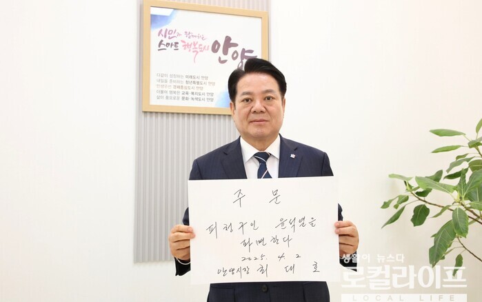 [안양=로컬라이프] 송준형 기자 = 최대호 안양시장이 ‘윤석열 파면 손글씨 릴레이’에 동참했다.