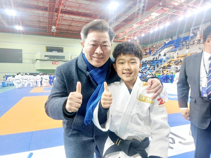 [광명=로컬라이프] 송준형 기자 = 박승원 광명시장은 3일, 자신의 페이스북을 통해 오늘 광명시민체육관에서 제27회 광명시장배 유도대회가 열렸다며, 오늘 유도대회에서 가장 신나게 박수치고 응원하는 꼬맹이와 너무 귀여워서 사진 한 장 찰칵했다고 위(사진)와 같이 전했다.