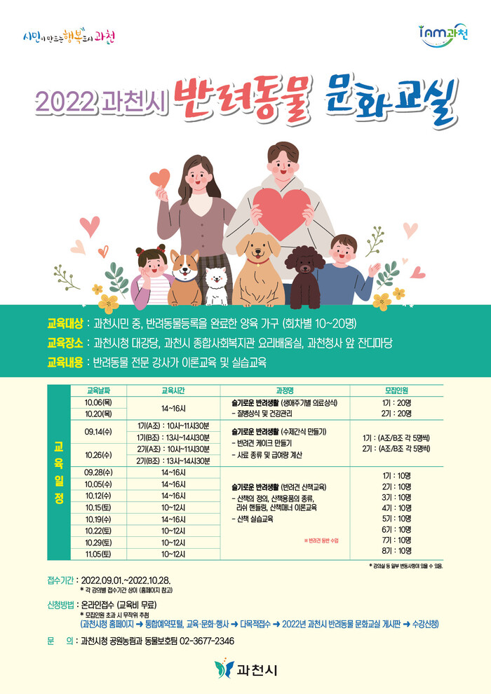 과천시가 올바른 반려동물 돌봄 문화 정착을 위한 시민 대상 교육 프로그램 ‘반려동물 문화교실’을 운영한다.