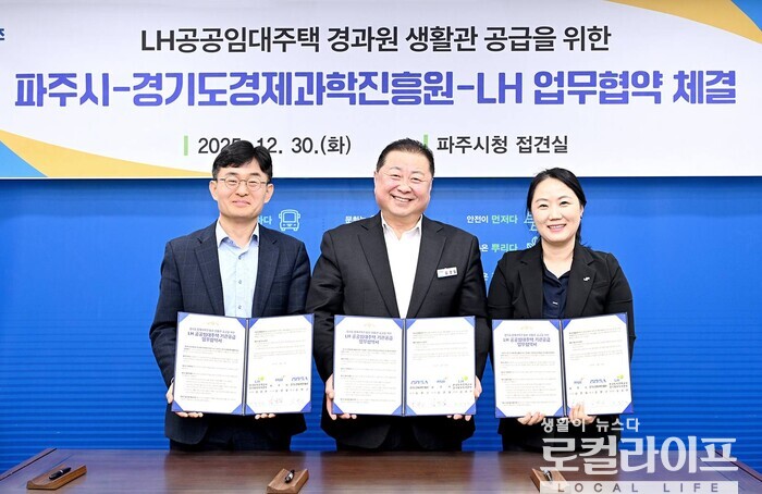 [파주=로컬라이프] 송준형 기자 = ‘LH공공임대주택 경과원 생활관 공급을 위한 파주시-경기도경제과학진흥원-LH 업무협약’이 30일 체결됐다.