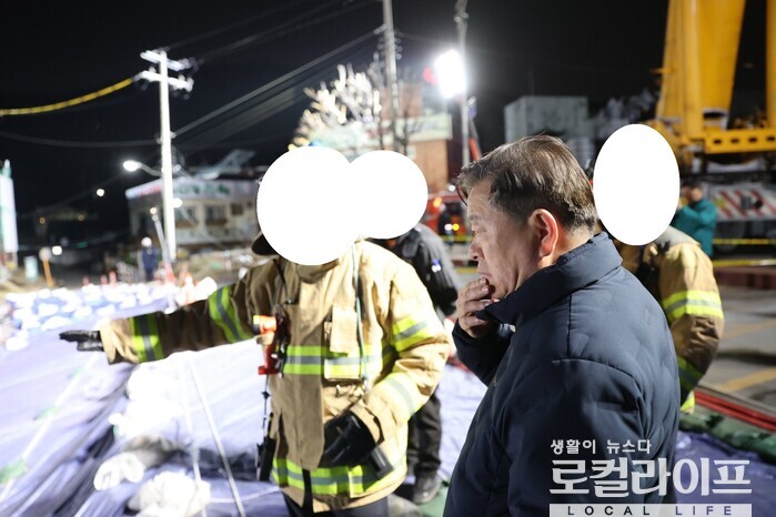 [광명=로컬라이프] 송준형 기자 =박승원 광명시장이 신안산선 지하철 공사장 붕괴 사고 현장을 찾아 살폈다.