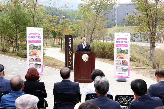 이날 개장식에는 김성제 의왕시장을 비롯해 김학기 의왕시의회 의장 및 시의원, 사회단체 회원과 시민 등 150여 명이 참석해 개장을 축하하고 황톳길을 둘러보는 시간을 가졌다.