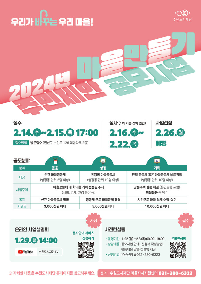 문의 : 수원도시재단 마을자치지원센터 031-280-6323