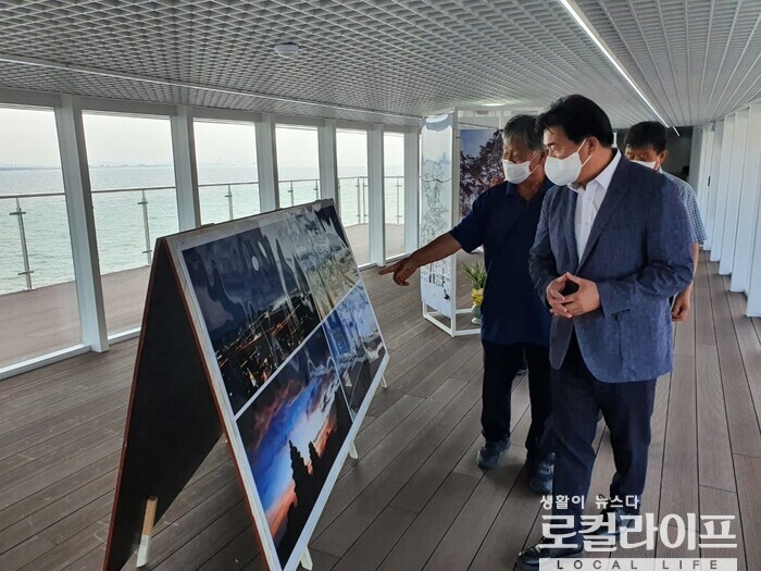 이날 임병택 시장은 “노을과 바다를 볼 수 있는 전망대와 갤러리로 만들어 오픈했다”며 “오늘 그곳에 작품전을 열고 계신 김종환사진작가님 작품전에 들려 인사드리고, 바뀐 공간도 둘러 본다. 오이도의 오아시스이다”라고 말했다.