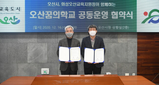 [로컬라이프] 오산시(시장 곽상욱)가 관내 마을교육공동체와 함께 경기도교육청이 시행하는 ‘꿈의학교’를 공동운영하기 위해 화성오산교육지원청(교육장 남현석)과 ‘오산꿈의학교 공동운영 업무협약’을 16일 시청 상황실에서 체결했다.