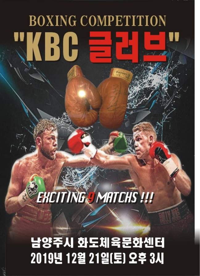 [남양주=로컬라이프] 송준형 기자 = 프로복싱 ‘KBC글러브’ 시즌1 대회가 오는 21일 오후 3시 남양주시 화도문화체육센터에서 열린다.
