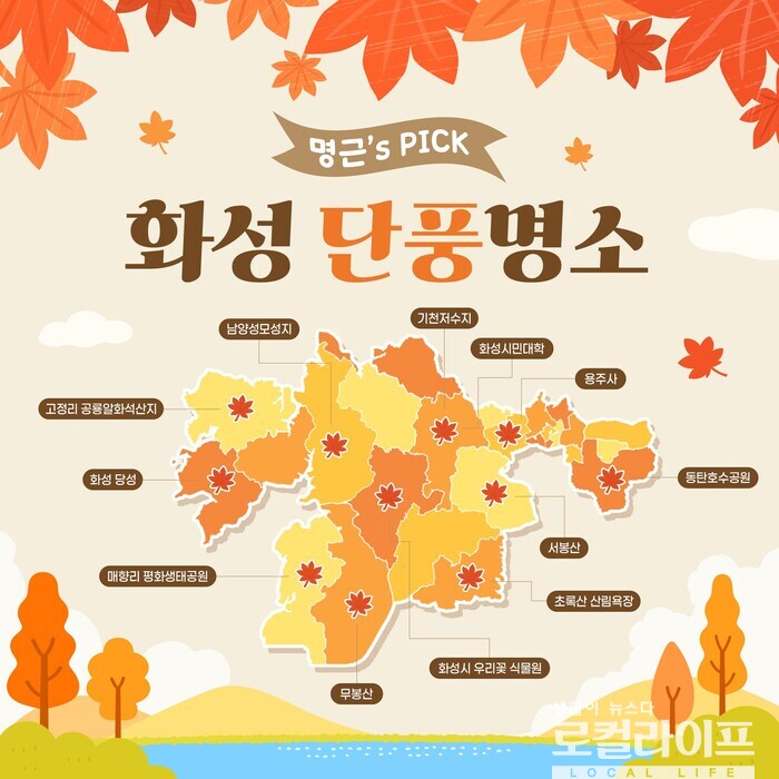 이어 "이번 주말, 단풍이 절정을 이룰 것으로 예상되니, 화성의 아름다운 단풍 명소에서 힐링하는 시간을 가져보는 건 어떠세요?"라고 권했다.