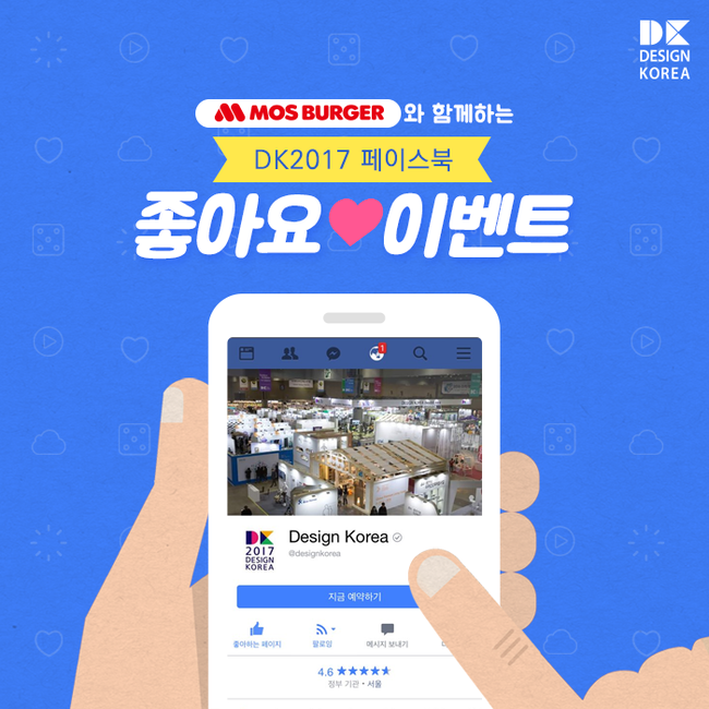 산업통상자원부가 주최하고 한국디자인진흥원이 주관하는 대한민국 최대의 디자인전시회인 디자인코리아에서 9월19일까지 페이스북 좋아요 이벤트를 진행한다고 밝혔다.