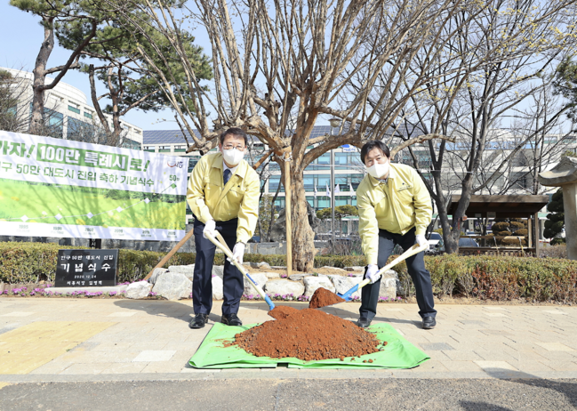 시흥시(시장 임병택)는 17일, 시흥시청 정문에서 ‘인구 50만 대도시 진입 기념식수’ 행사를 개최했다.