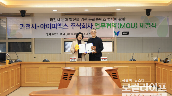 [과천=로컬라이프] 김민정 기자 = 과천시와 IPX(구 네이버 라인프렌즈)는 4일, '과천시 문화 발전을 위한 문화콘텐츠 협력에 관한 업무협약'을 체결했다.