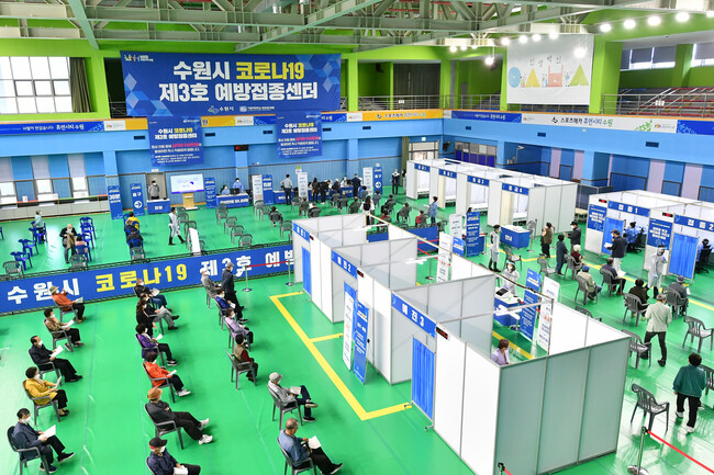 한편 ‘수원1호 예방접종센터’(아주대학교 체육관)는 4월 1일, ‘수원2호 예방접종센터’(권선구 정현 중보들 테니스센터)는 22일 운영을 시작했다.