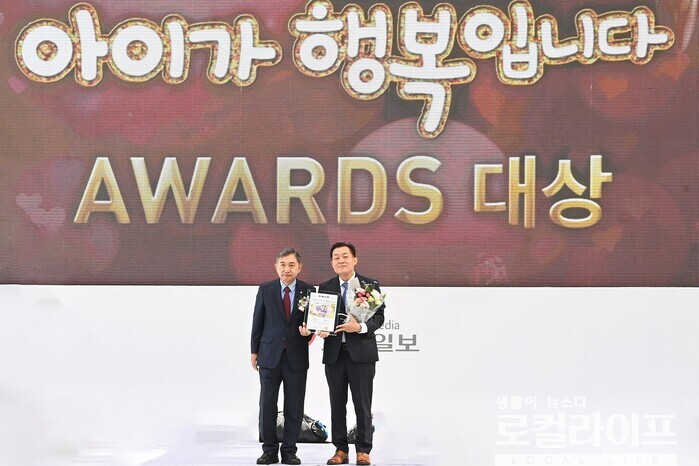 | ▲ 이재준 수원특례시장(오른쪽)이 ‘아동돌봄정책대상’을 수상하고 있다. (사진출처=이재준 페이스북) |