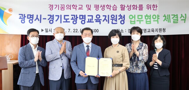 사진/광명시는 7월 22일 광명교육지원청과 ‘평생학습 및 경기꿈의학교 활성화를 위한 업무협약’을 맺었다.(사진제공=광명시)