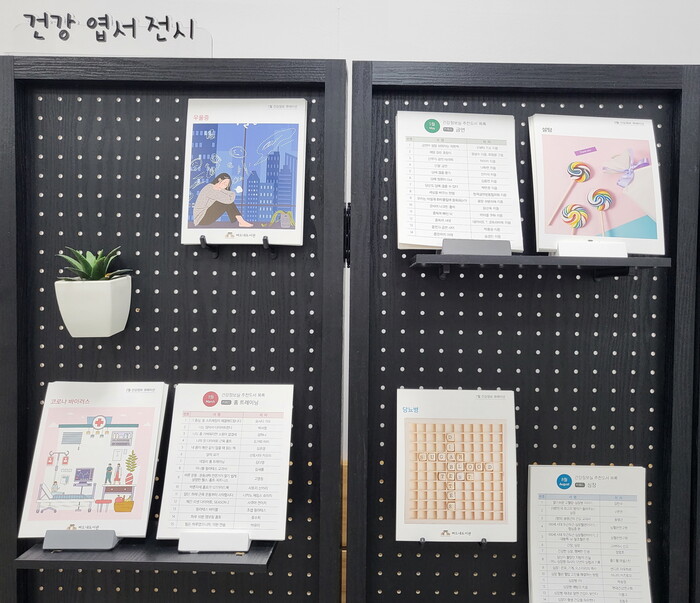버드내도서관은 건강 정보 엽서를 도서관 1층 로비에 전시해 도서관을 찾는 시민 누구나 자유롭게 감상하고, 필요하면 가져갈 수 있도록 무료로 제공한다.