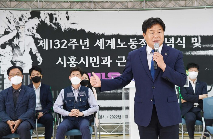 [로컬라이프] 송준형 기자 = 시흥시 근로자 종합복지관에서 2022년 근로자의 날 기념행사가 열렸다.