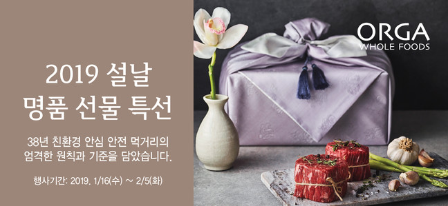 풀무원 계열의 LOHAS Fresh Market, 올가홀푸드(대표 강병규, 이하 올가)가 기해년(己亥年) 설날을 맞아 38년간 이어온 친환경 안심·안전 원칙을 지켜 만든 ‘2019 설맞이 건강선물’ 기획전을 연다고 16일 밝혔다.