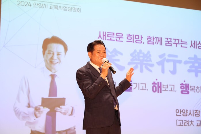 [안양=로컬라이프] 박현우 기자 = 최대호 안양시장은 4일, 미래교육에 대한 안양시의 방향성과 이를 뒷받침하는 다양한 교육정책을 소개하는 ‘2024년 안양시 교육사업 설명회’에 강사로 무대에 올랐다.