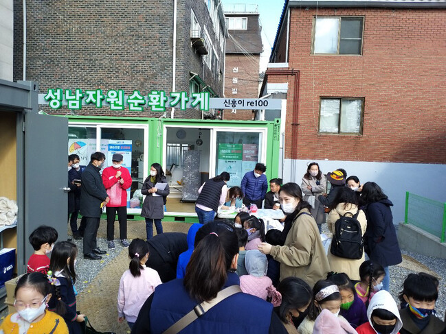 사진/신흥2동 자원순환가게로 재활용품 가져온 어린이들(성남시청 제공)