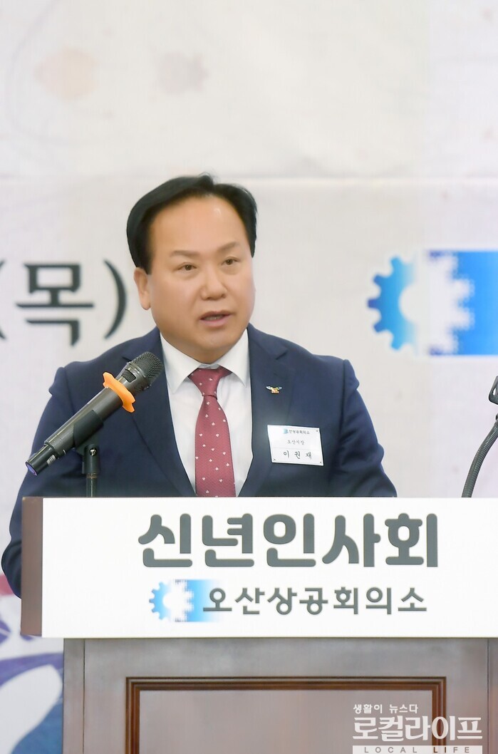 | ▲ 이권재 오산시장이 ‘오산상공회의소 신년인사회’에 참석해 인사말을 하고 있다. (사진출처=이권재 페이스북) |