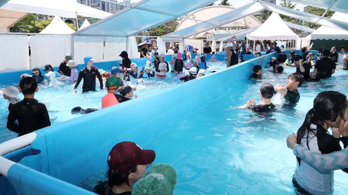 그러면서 이곳 수영장은 8월17일까지 오전10시부터 오후 5시까지 운영하며, 월요일은 쉬고, 토요일은 오후 9시까지 야간개장한다고 밝혔다.