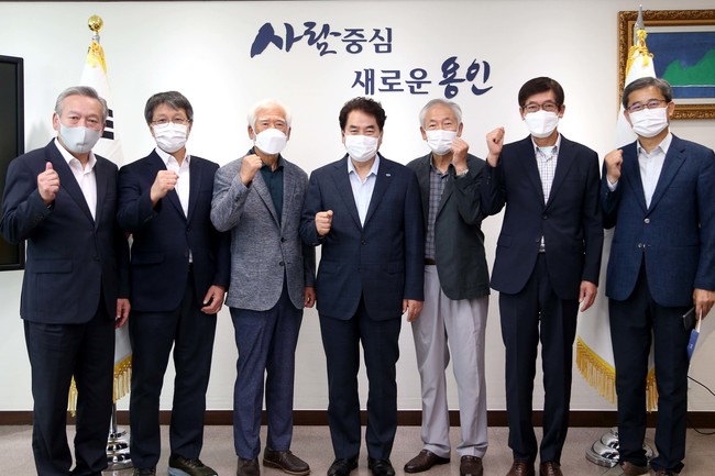 [로컬라이프] 백군기 용인시장은 12일 시장실에서 광복 75주년을 앞두고 지역을 대표하는 2대 독립운동가 홍재설 선생과 그 아들 홍종욱 ‧ 홍종엽 선생의 후손들을 만나 선열의 희생정신을 기리고 유족들을 격려했다.